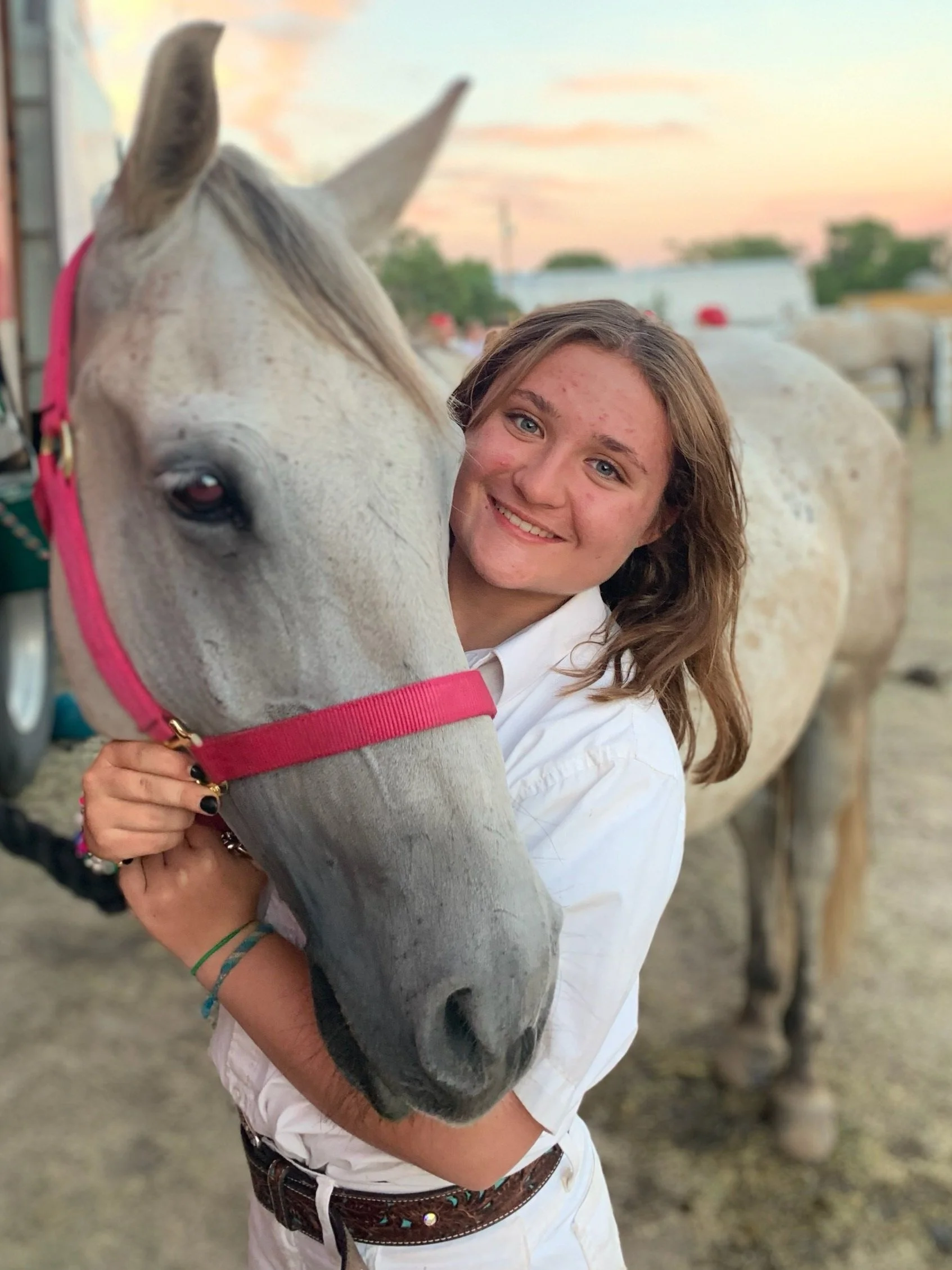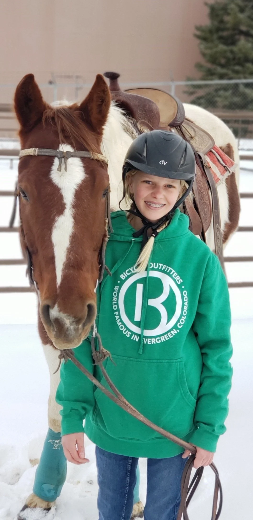 My name is Ellie Bruce and I’m 13 years old. I started interning in the winter of 2023. I’ve loved horses since I was around 3 years old and I’ve been riding since I was 6 years old. When I was 8, I got my first horse from Carly. My horse, Amigo, and Carly have taught me so much about horses from riding to grooming to just horses in general. My favorite part of interning is working with all of the other different horses. When I’m not interning, you can find me buried in a book or helping out around the house and my grandparents’ ranch. In the future, I hope to become a professional horse trainer and barrel racer.